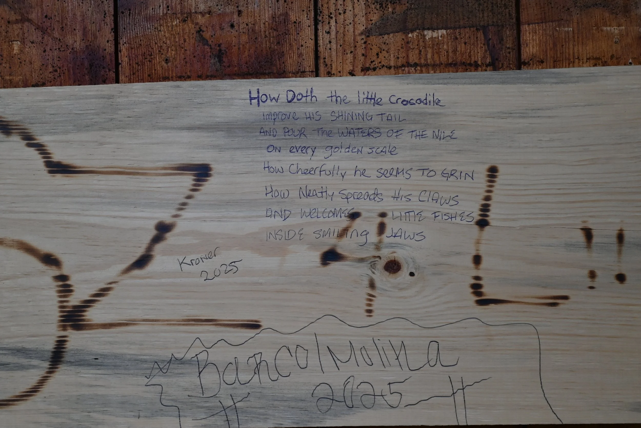 The bridge features message planks designed to allow visitors to write or draw on the interior of the bridge without vandalizing the original structure. Someone wrote How Doth the Little Crocodile by Lewis Carroll from his 1865 novel Alice’s Adventure in Wonderland. The beauty of covered bridges is that each one is a travel adventure to a lovely land of wonder.