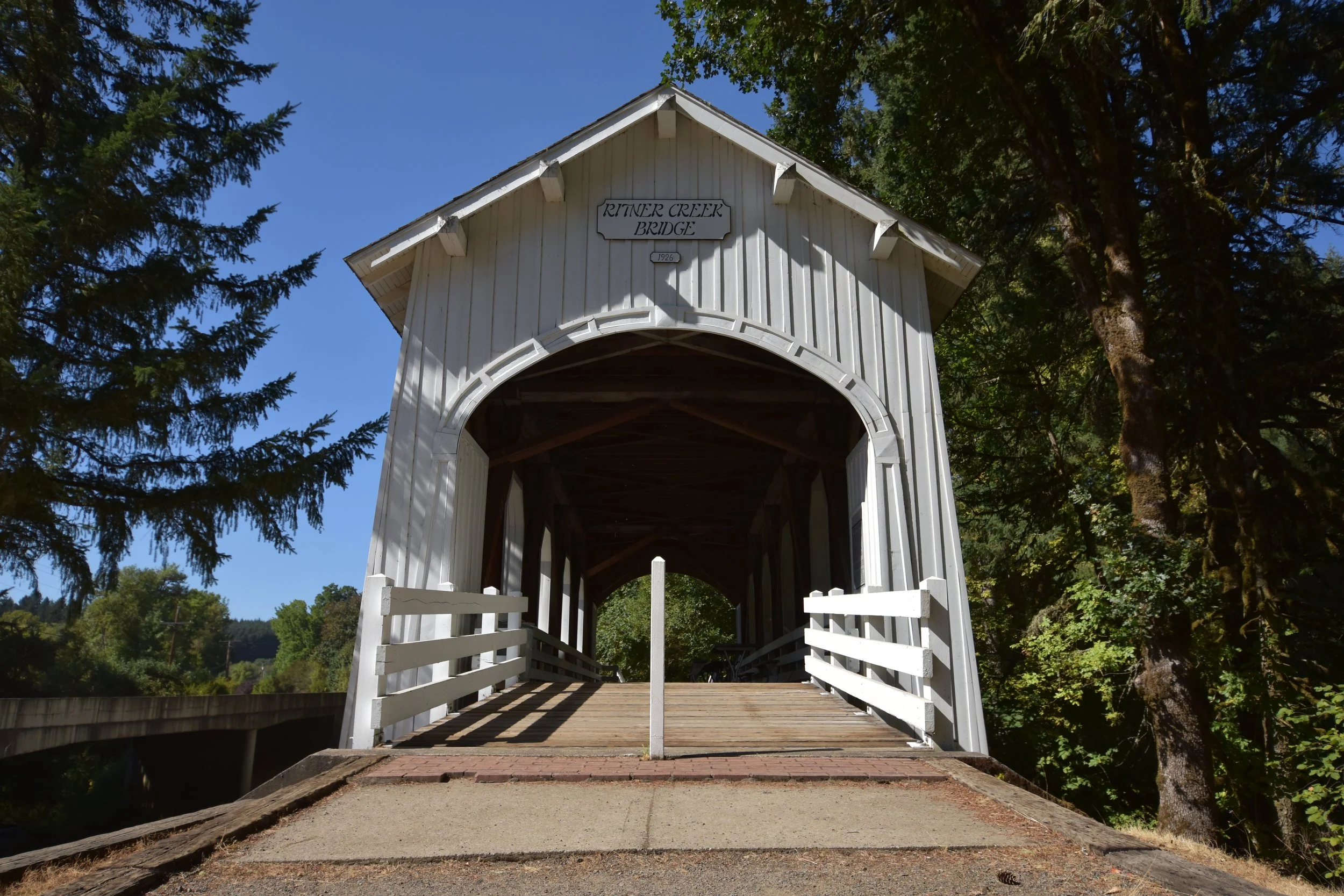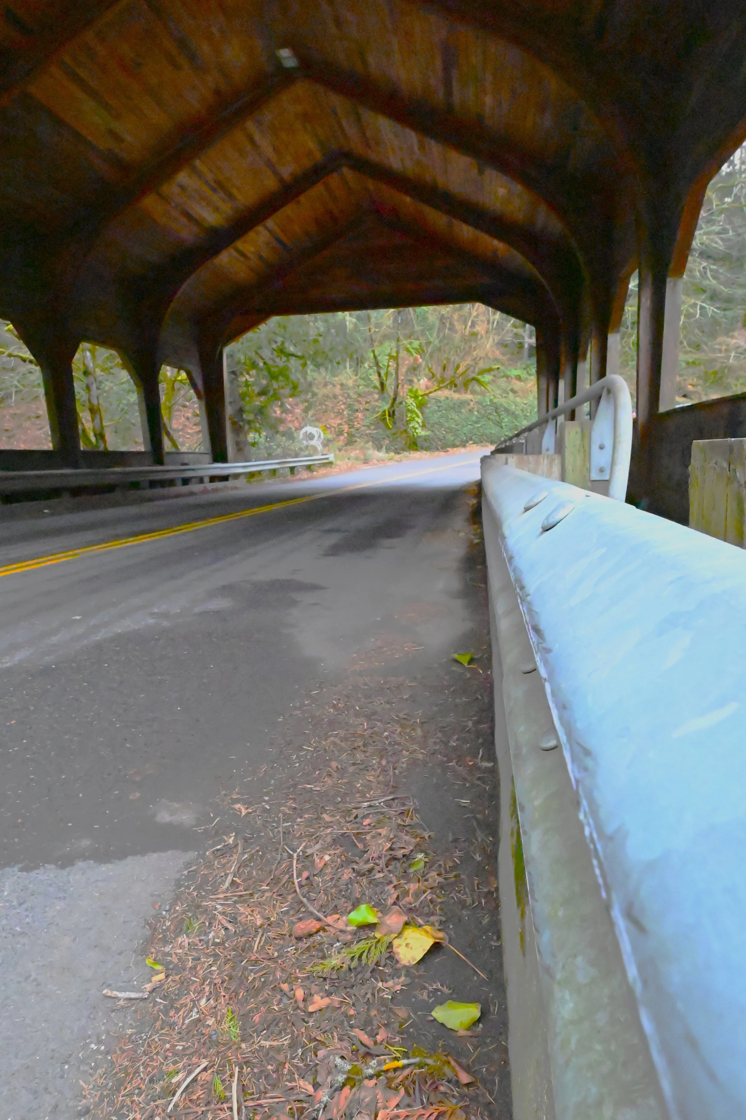 Of note: Cedar Crossing in Multnomah county is a housed bridge (has a roof over it) but does not feature a truss and is a timber stringer structure (1985, p. 161).